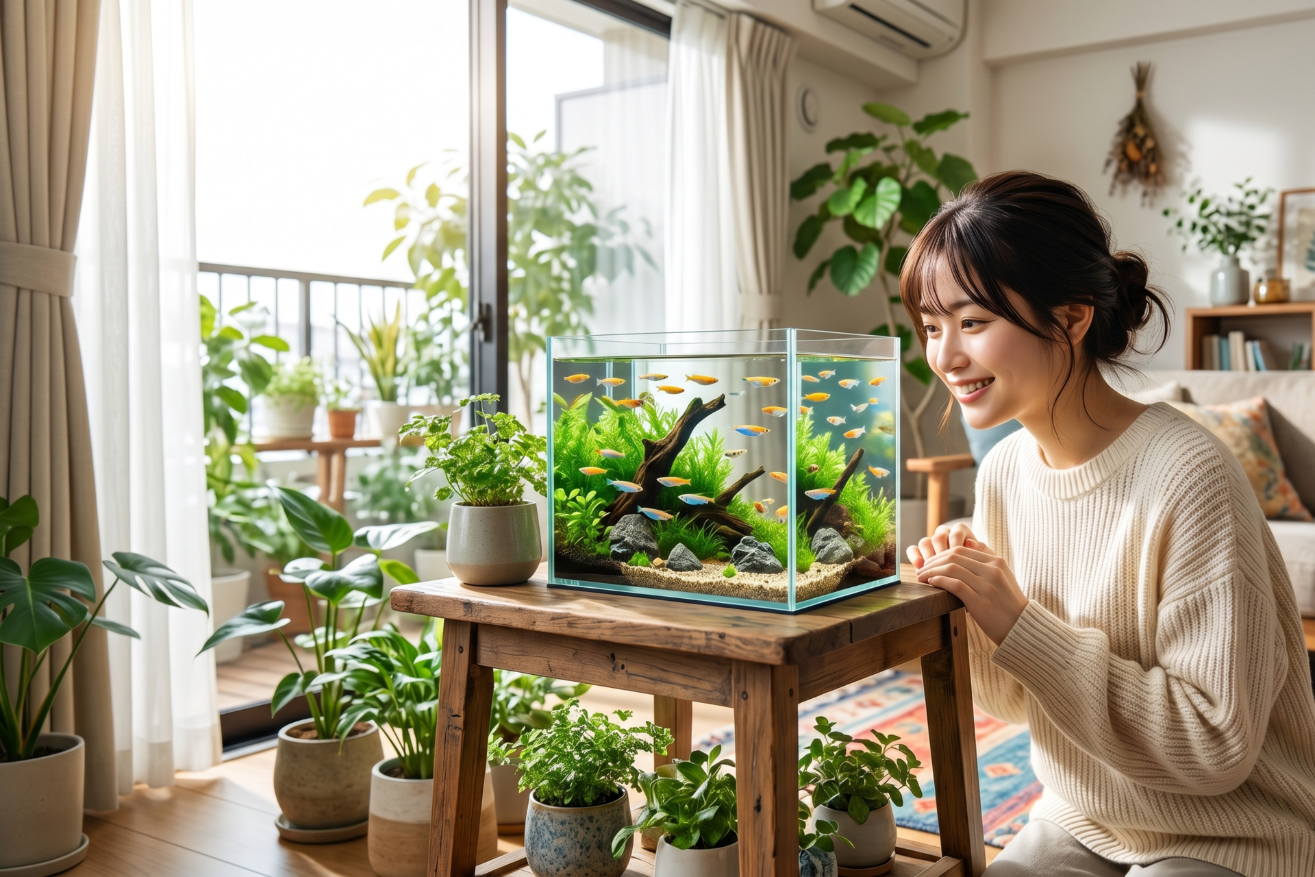 仕事や学校から帰ってきたお部屋に、キラキラと輝く水槽があったら……想像するだけでワクワクしませんか? 水草の間をスイスイと泳ぐ小さくてカラフルなメダカたちは、眺めているだけで日常のストレスをスッと忘れさせてくれる「究極の癒やし」です。
